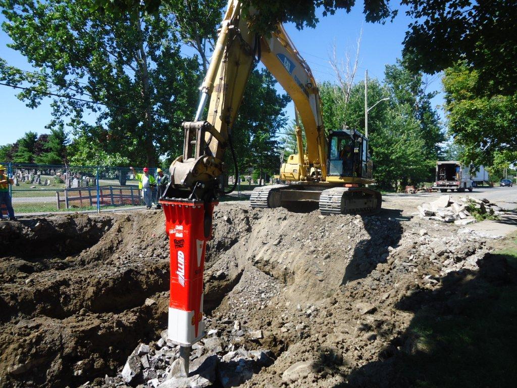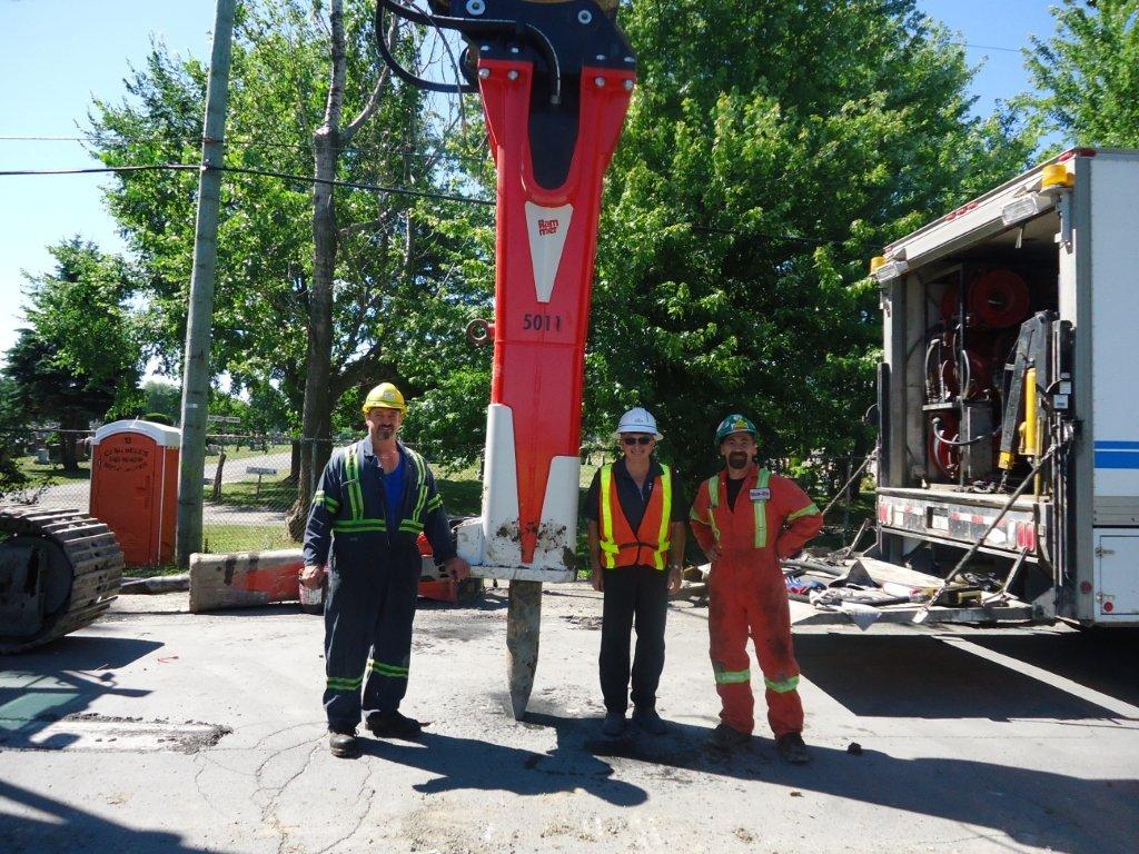 That relationship was strengthened still further with the purchase of Canada’s first Rammer 5011 hammer.“We were the successful bidder on a project in Kingston Ontario for storm, sanitary, and water infrastructure replacement that required 9,000 m3 of limestone to be removed without the use of explosives,” Corcoran explains.“The material is all trench rock with depths to six metres and width to four metres. We started the project with our G110's, and quickly concluded we needed some additional power. So we called Van Ed Equipment and took the opportunity to purchase the first BR5011 in Canada.”