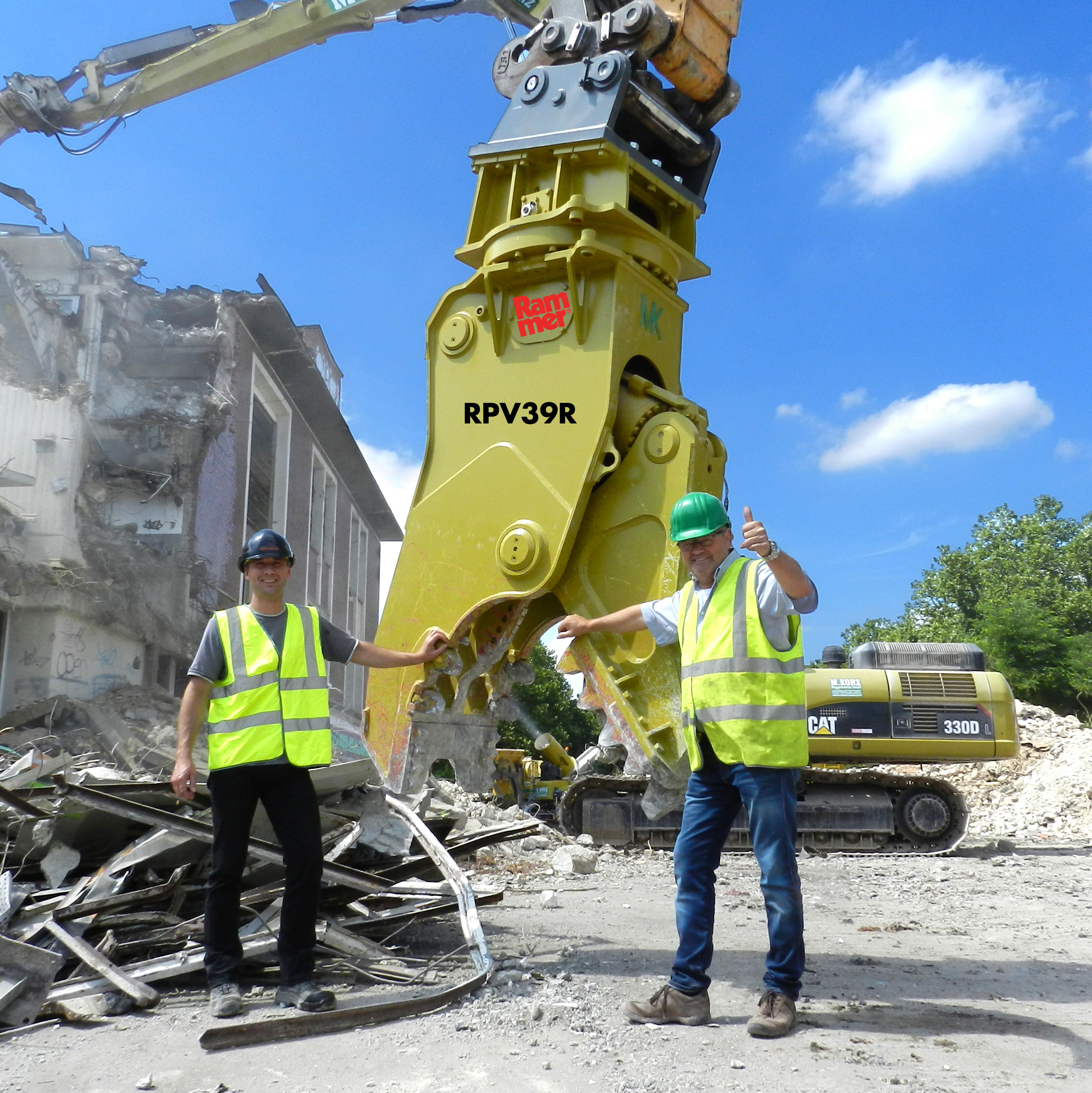 Two concrete and steel cutters RC22N and RCC43R were used. The RAMMER concrete and steel cutters are perfectly suited to crushing concrete and cutting through construction steel and other structures as they have extremely strong jaws, long cutting blades with a hardened surface and a robust design. The RC concrete and steel cutters are the efficient alternative to other demolition methods and perfectly suited to sensitive application areas where low vibration, low noise levels and sound are important.